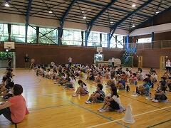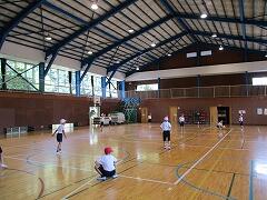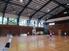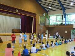 3年生が体育館で体育をしていました。担任の飯塚先生が温度計のチェックをし、確認しながらの活動です。