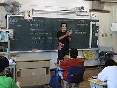 過去に3人のお子さんが本校に通っていたと、懐かしそうに校庭を眺めていらっしゃいました。お子さんの年齢が、もう50近いというお話でしたので、創立間もない頃の在校生のお父様ですね。「気持ちよいけれど、暑いですね」と話したら、笑顔で「日陰でやれば良いのに」とごもっともなご意見。おはずかしい。