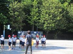 朝一番の外体育では、2年生が音楽に合わせて体ほぐし運動からのスタートです。