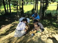 1年生が校庭にある草むらに集まっていました。