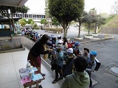 今年度も,児童昇降口前にて検温・及び手指消毒を行い,教室に入ります。