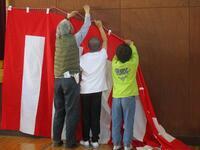 子ども達は体育館で会場づくりをしたり、1年生の教室で飾り付けをしたりしました。