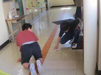 その後、訓練を通じて教室から避難場所までの経路を確認しました。