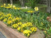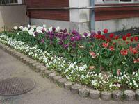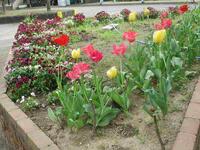 色とりどりのチューリップやパンジーが咲いています。