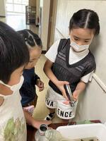 子ども達は、タニシの殻を割って餌にしてあげたり、汚れた水槽の水をきれいにしたりしています。