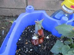ここのところ、チューリップの芽が出てきている鉢もあります。もちろん、全ての球根が「イッセーのドン!」と同時に発芽するわけではありません。