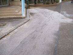 うっすら白い体育館前