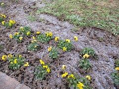 今日、あられの降る中で花壇で綺麗に咲いているパンジーを見ました。