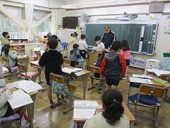 手袋をしていない児童の手は赤くなっています。「手をぐーっと握ると温かくなるよ」という私の言葉に「ほんとだ!」「寒くて、握る力も出ない」・・・いろいろな反応が返ってきました。