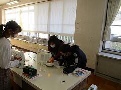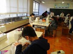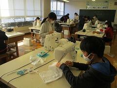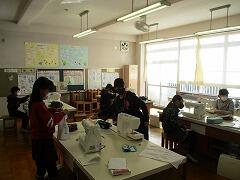 ミシンに向き合う6年生。