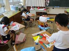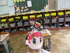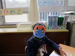 1年生が鬼のお面を作っていました。とても楽しそうでした。