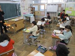 今朝は、5年生の入力の様子を見学しに、柏市教育委員会指導主事の小原先生がお見えになりました。