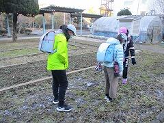 毎朝、登校してすぐにふせ菜の畑の手入れに向かう5年生。