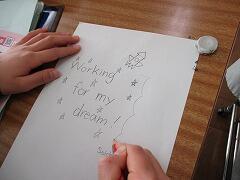 全校で進級カードを片手にがんばっています。