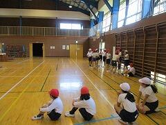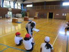 体育で一通りの運動が終わったとき、「腕や手が痛い人はいませんか」と子どもたちに確認。