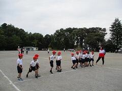 「はい、両手感覚を広げて1mぐらい離れて集まるよ。」