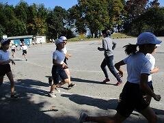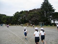 冷たい空気の中、曇り空のもと、持久走の練習をしました。