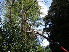 今日はまず、裏門の左側(校庭から見て)にある桜の木の枝下ろしをしていただきました。