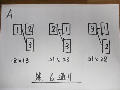 と考える。同じ事をしているようですが、Aとの違いは「2つの並び方に関係ないBの方はだぶっているものを省くから3通りになる」というところです。