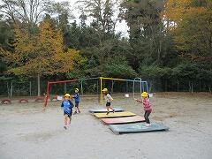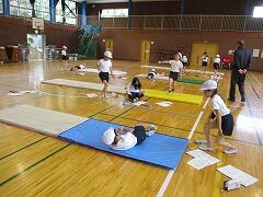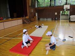 縄をうまく回して、タイミングを合わせてジャンプするという行為は、とても難しいものです。たかが前跳びというなかれ。同時にいろいろな動きをしなければならないので大変なのです。今は、練習台でそれぞれの力に応じて頑張って練習しています。
