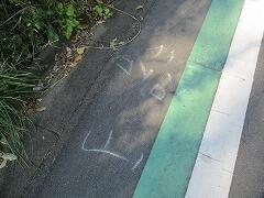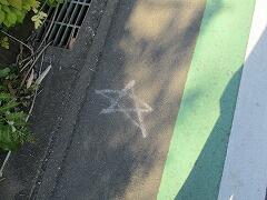 現場の写真を撮りに行って、正門に戻ったところで、担任と該当児童と会いました。担任にうながされて、口々に謝ってきたので、道路は危ない、寄り道はいけない、悪いとわかったらもうしない、という話をしました。その後、担任と一緒にたわしと水の入ったペットボトルを持って、消しに行きました。自分たちのしたことです。反