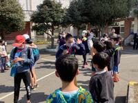 卒業式に参加できない1年生から3年生は、6年生と会う最後の日なのでにプレゼントを渡しながらみんなで見送りました。
