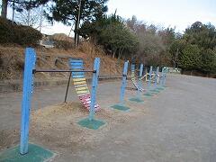鉄棒自体の問題ではなく、基礎の部分です。もともと鉄棒の支柱を支えているコンクリートは地中にあるものですが、雨風で土がなくなり少しずつ地面に顔をだしてしまう例が多く、つまずいたり、落下したりしたときのけがが心配されます。今回、コンクリートを緑色の樹脂のような物に代えてあります。冬は冷たい鉄棒ですが、使用可能になりました。