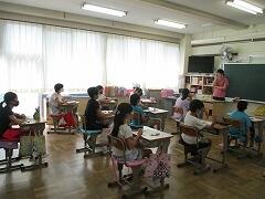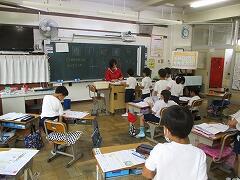 過去に3人のお子さんが本校に通っていたと、懐かしそうに校庭を眺めていらっしゃいました。お子さんの年齢が、もう50近いというお話でしたので、創立間もない頃の在校生のお父様ですね。「気持ちよいけれど、暑いですね」と話したら、笑顔で「日陰でやれば良いのに」とごもっともなご意見。おはずかしい。