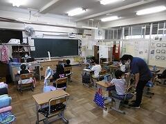 写真は低学年実施の様子です。子どもルーム利用者等は自分たちの教室にて