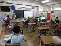 他学年と交わらないよう「リモート学習」を行いました。