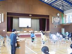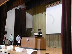 左下の写真は,5年生代表児童による「送辞」の様子です。