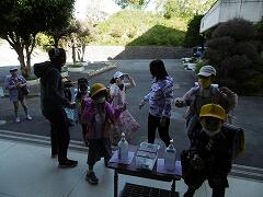 本校では,7:45から昇降口前にて職員による検温及び手指消毒を