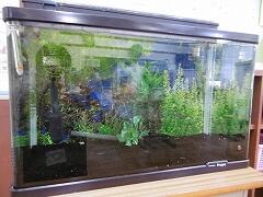 右の水槽は,5年生教室のものになります。理科「めだか」の学習より