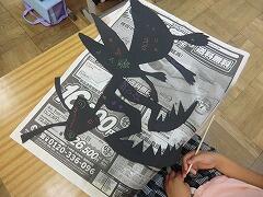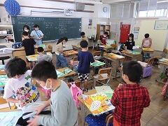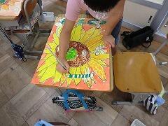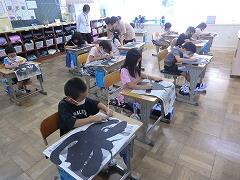 2年生の教室をのぞくと、図工の作品が仕上げに入っていました。