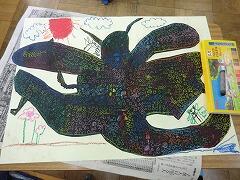 なかなか画用紙いっぱいには描けないものですが、3年生全員が思いきり大きく描けていました。