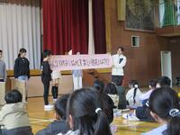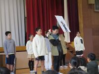 12月の全校朝会では、計画委員の子ども達が全校遠足について説明しました。