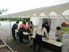 朝から天気の心配があったので、職員でテントの準備をしました。