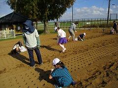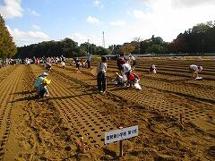 最初のうち、「暑い」「腰が痛い」と口にしていた子どもたちも、時間が経つにつれ作業のこつをつかみ、一生懸命に球根植えに取り組むことができました。2年生以上の子どもたちは昨年度までの経験を生かした手際の良い作業でした。1年生も見よう見まねで頑張りました。
