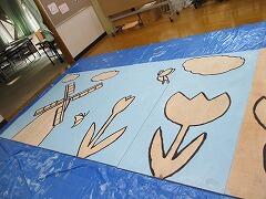 スタートは2年生です。水色の水性ペンキで大きな大きな空を塗りました。