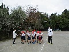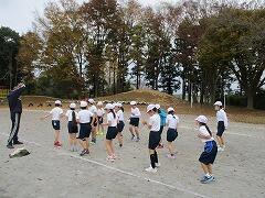 持久走練習が終わり、子どもたちが担任の先生のところに集まります。