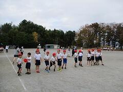 外での活動ですが、出発前の手洗い・うがい・マスク着用の後、校庭に並びました。