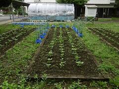 畑の場所は体育館渡り廊下横の,三面となります。