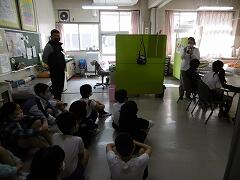 2年生下校時には移動交番も来てくださり,2年生の下校指導を行って