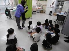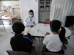 保健室内では,養護教諭の話をしっかりと聞き,落ち着いて健診を受けました。