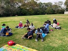 天気が良いので外の広場でお弁当です。