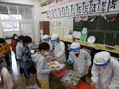 こちらは,低学年の給食準備の様子です。