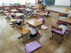 1年生にとっては初めての訓練です。事前に1時避難の仕方や運動場への