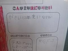 内容をみてみると、『こんな2年生になりたい』の枠に「1年生にやさしい2年生になりたい」「1年生にやさしくする」というのが多くありました。