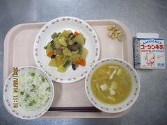 今日の1時間目に,2年生が一生懸命さやむきをしてくれ,それを給食で