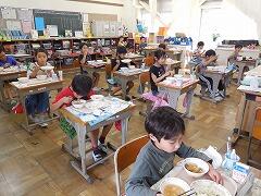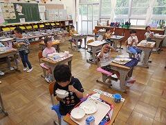 給食では,1年生の手が加わったそら豆を全校でいただきました。